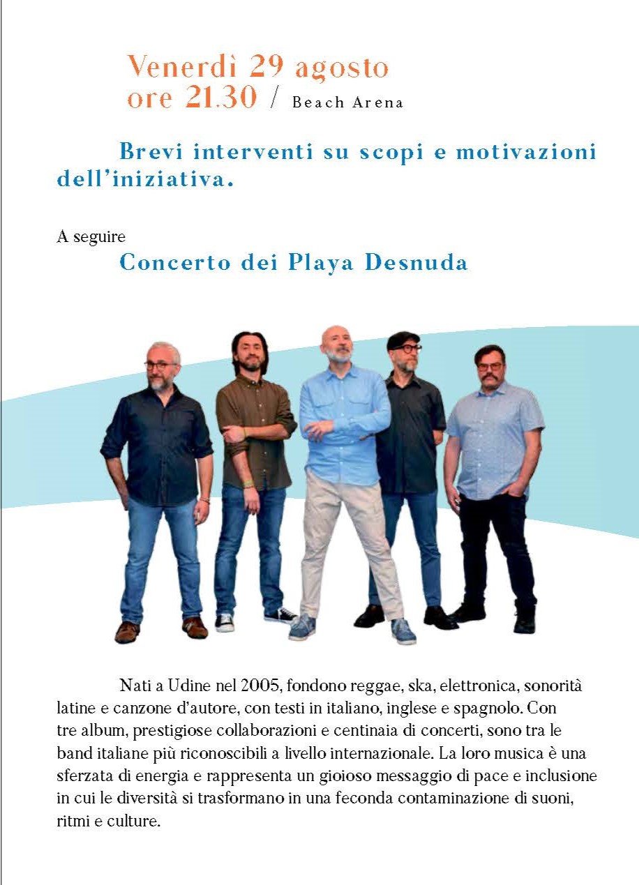 Zwei besondere Abende voller Reflexion, Musik und Kunst, um Räume des Friedens und der Solidarität zu schaffen. Lignano in Fiore ODV, gemeinsam mit Dome Aghe e Savalon d’Aur und in Zusammenarbeit mit lokalen Initiativen, präsentiert die Ausgabe 2025 von „A filo d’acqua“: eine Veranstaltung, die Kultur und Spiritualität in einem einzigartigen Rahmen zwischen Stadt und Meer vereint.