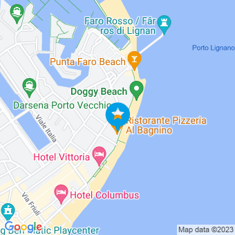 Il ristorante pizzeria al Bagnino è un locale storico di Lignano Sabbiadoro, uno dei pochi con una stupenda posizione di fronte al mare e un’ampia visuale sull’adriatico e sulla costa istriana.