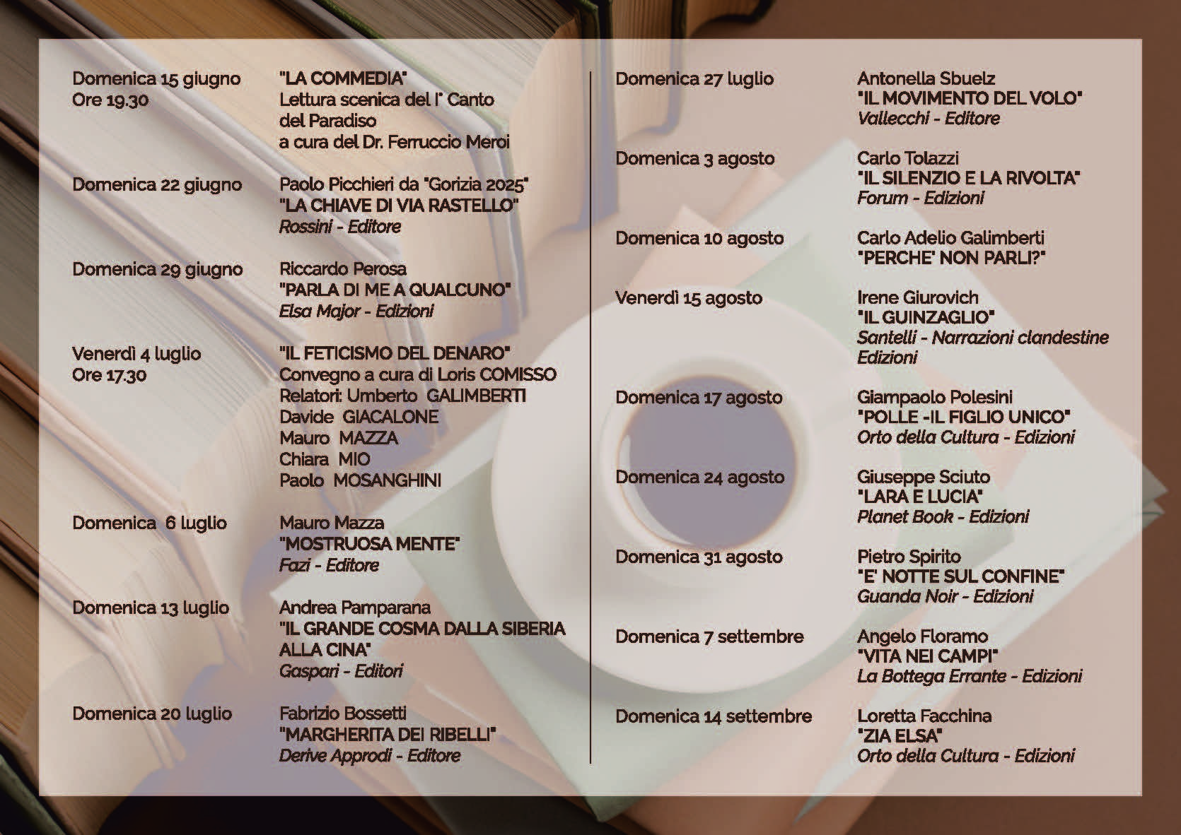 Every Sunday, from June 15 to September 14, the ninth edition of the cultural event “A Book… a Coffee” takes place in the Sala Mare of the Kursaal Congress Centre in Lignano Pineta.