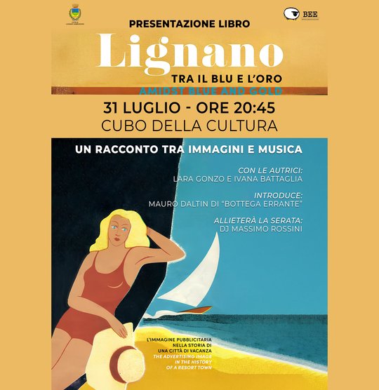 The evening will feature the presentation of the book “Lignano tra il blu e l’oro” – “Lignano Between Blue and Gold” – a visual and emotional journey through the evolution of the advertising image of our seaside town. Through photographs, posters, and promotional graphics, the book takes us on a fascinating journey through the colors, language, and dreams that have shaped Lignano’s identity over time.
