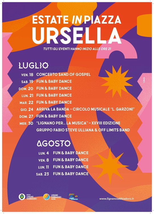 Piazza Ursella lights up again this summer with a rich calendar of events for the whole family! Live music, children's shows, and band performances will make every evening a special one under the stars.