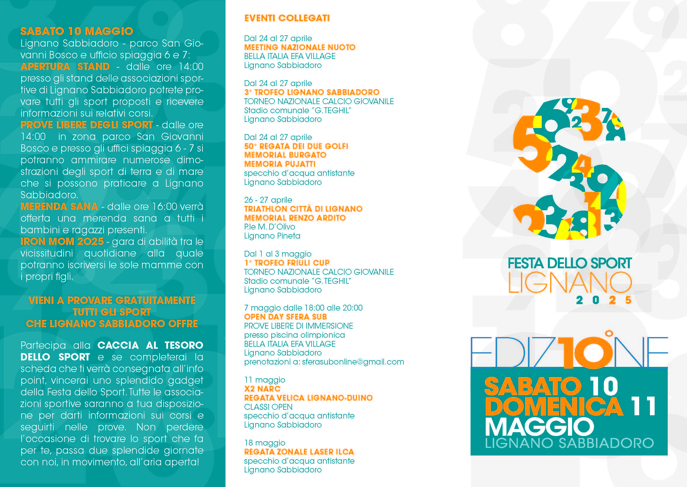 Saturday 10th and Sunday 11th May 2025 will take place the usual sport and friendship event in Lignano Sabbiadoro: the 10th edition of Festa dello Sport of Lignano Sabbiadoro.