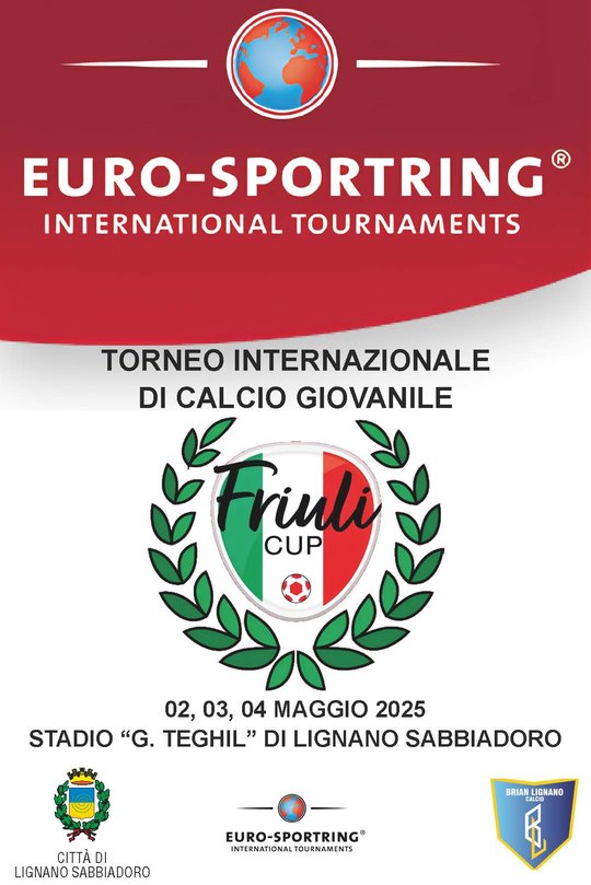 From May 2nd to 4th, the first edition of the Friuli Cup will take place at the G. Teghil Municipal Stadium in Lignano Sabbiadoro — an international youth football tournament hosted at the local stadium.