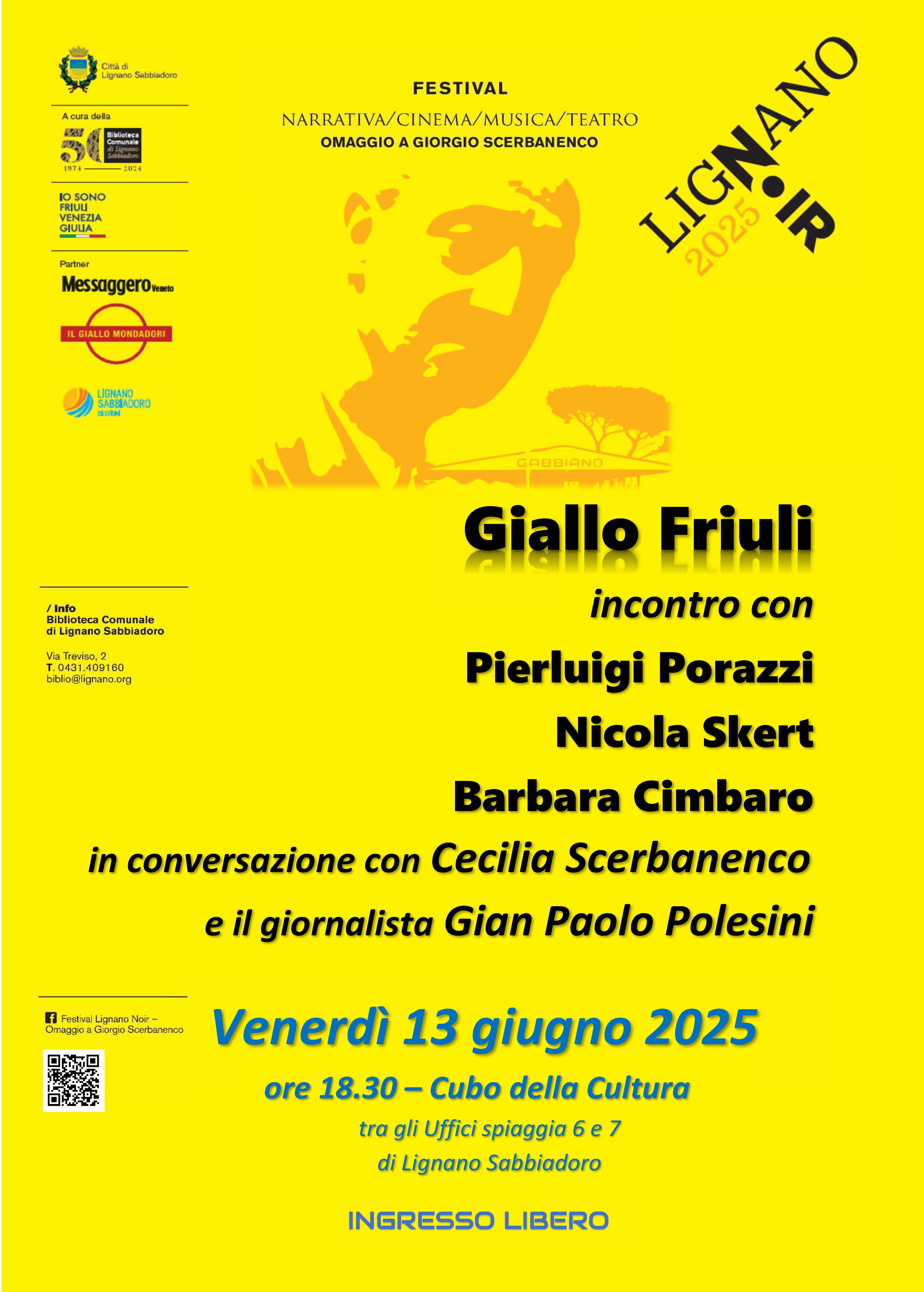 As part of the Lignano Noir 2025 – A Tribute to Giorgio Scerbanenco, the event Giallo Friuli will take place on Friday, 13 June 2025 at 6:30 PM, a special evening dedicated to crime and noir fiction from the Friuli region.