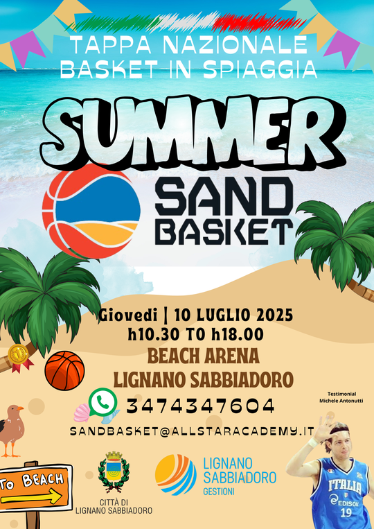 With the Lignano Sabbiadoro stage, the national circuit of Sand Basket will officially debut, the sporting discipline of basketball on sand which involves thousands of enthusiasts in the most famous Italian seaside resorts.