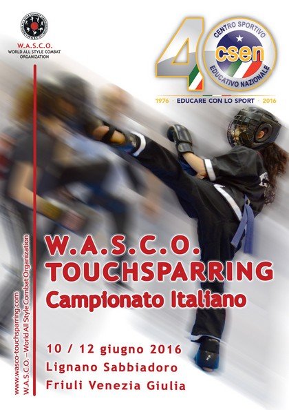 La manifestazione W.A.S.C.O. (World All Style Combat Organization) Campionato del mondo di Touch Sparring, giunta alla sua decima edizione, si svolgerà per la terza volta a Lignano Sabbiadoro dal 9 al 12 giugno 2016 presso il Palazzetto comunale.