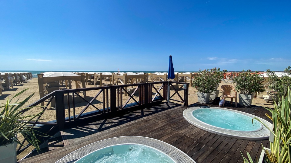 Aree esclusive dedicate al benessere in riva al mare. Rilassati e lasciati coccolare dalle bollicine delle vasche idromassaggio.