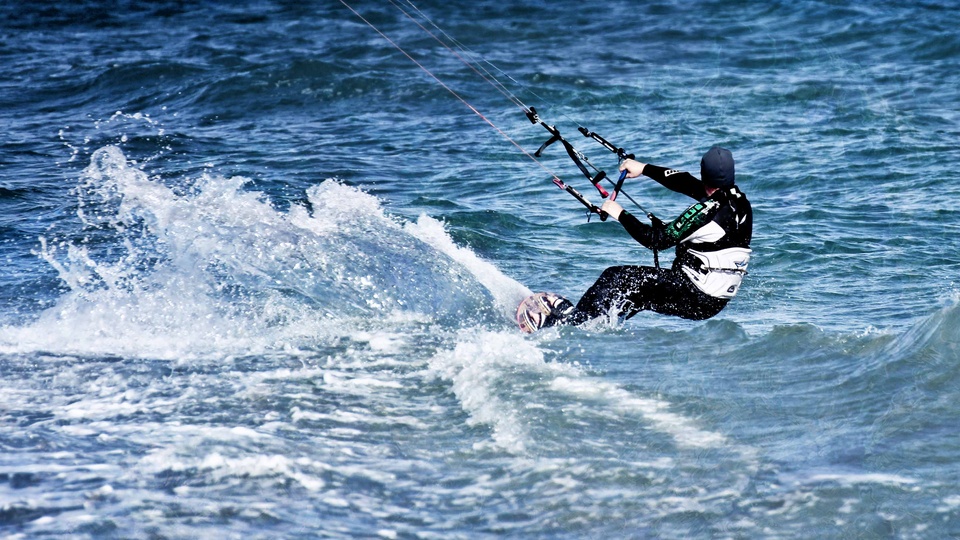 Praticare il kitesurf richiede un’attrezzatura apposita: una tavola e un aquilone manovrato mediante una barra di controllo.