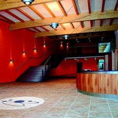 Al piano superiore, sopra l’area dedicata agli spogliatoi, docce e bagni, è stata realizzata un’ampia sala da circa 1.000 mq, dotata di impianto audio dolby-sorround 5.1 e di un sistema di proiezione su maxi schermo. La sala è destinata a ospitare manifestazioni musicali e culturali, meeting e convegni, mostre d’arte, cinema.