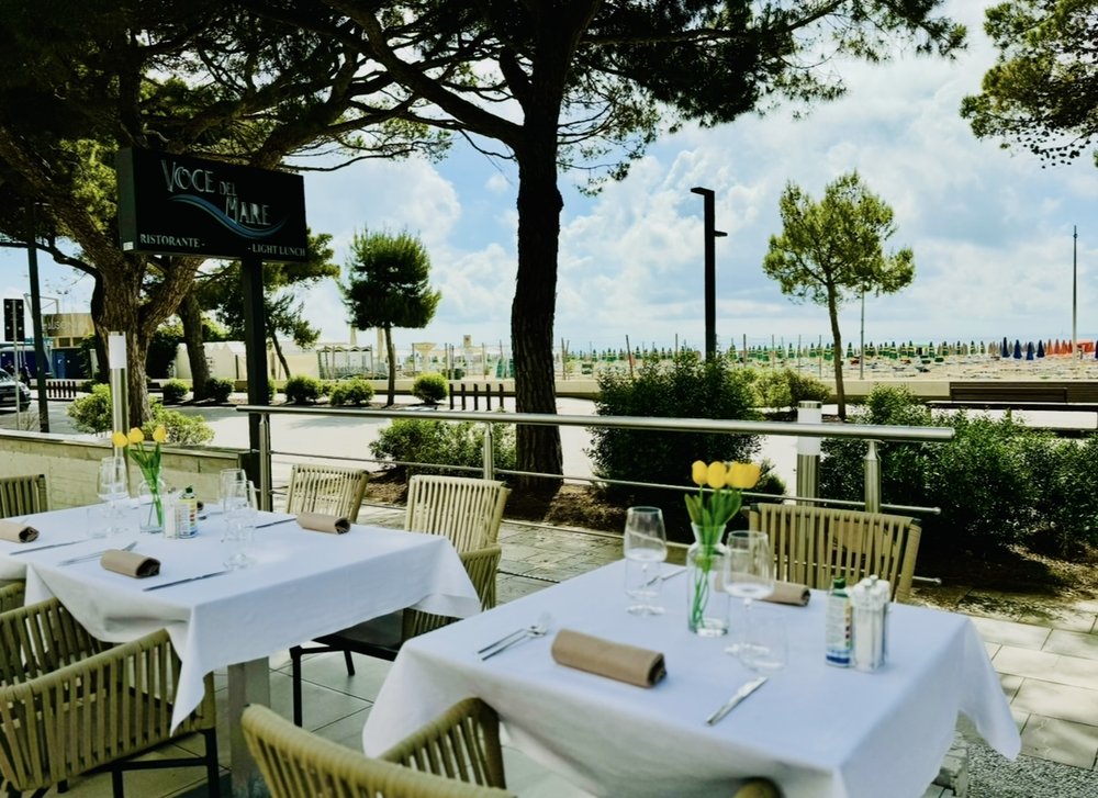 "Voce del Mare" Restaurant is located directly on the picturesque seafront of Lignano Sabbiadoro, offering guests a breathtaking sea view from its elegant panoramic terrace. It's the perfect place for those looking to enjoy an unforgettable dining experience in a relaxing and welcoming atmosphere.