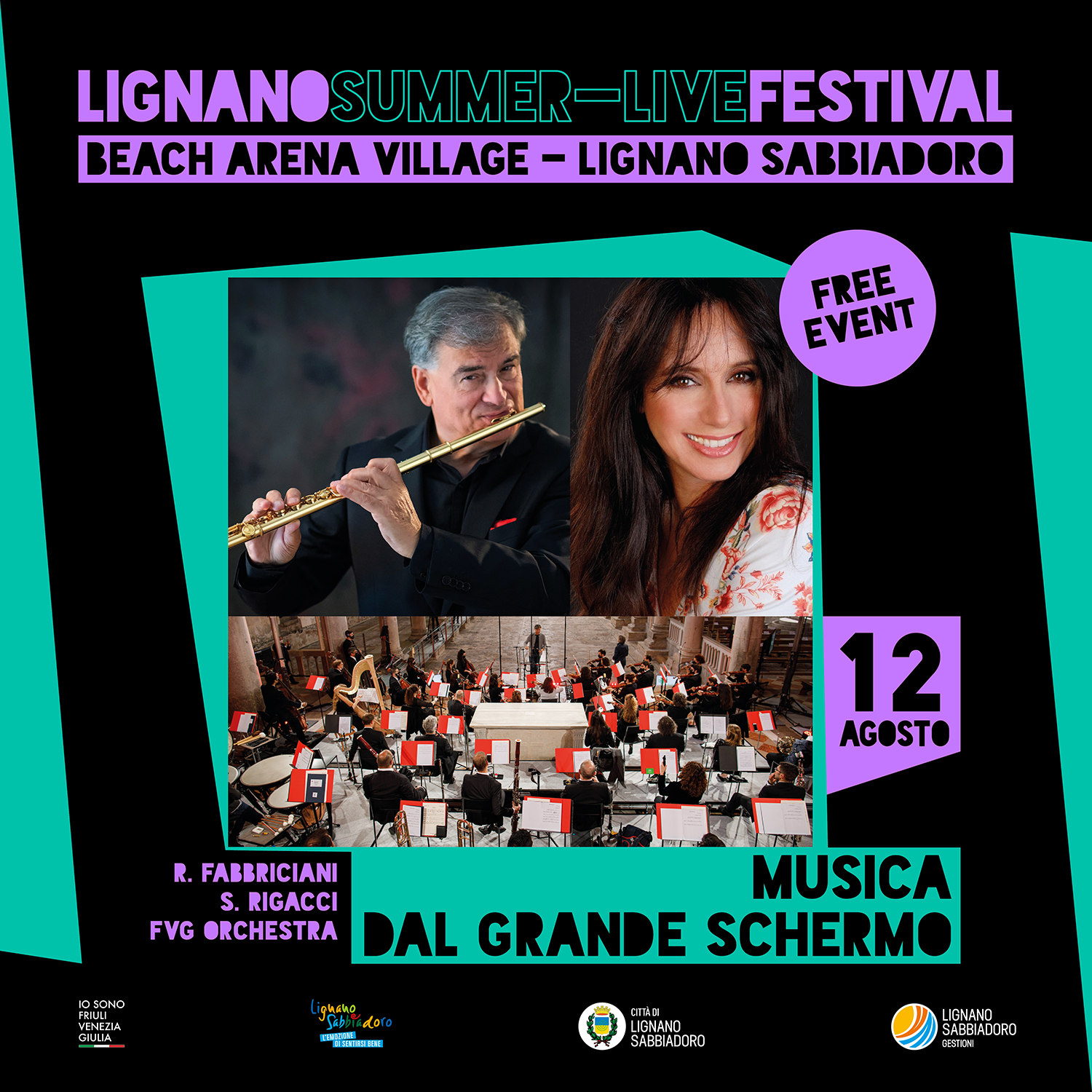 “Musica dal grande schermo” lo spettacolo interpretato dal soprano Susanna Rigacci, artista internazionale, che per oltre 20 anni è stata la voce solista di Ennio Morricone, e l’Orchestra Sinfonica del Friuli Venezia Giulia diretta da Roberto Fabbriciani, direttore e flautista che ha suonato nei più importanti teatri e con le migliori orchestre del mondo. Il programma sarà diviso in tre parti ed illustrato da Luisella Botteon. La prima parte è dedicata al mondo fantastico di Walt Disney, con celebri melodie tratte da memorabili film firmati dalla famosa casa di produzione cinematografica. Un fantastico viaggio attraverso personaggi iconici della fantasia di adulti e bambini. La seconda parte è un medley dedicato ai temi tratti dai grandi film storici da Via col Vento a Colazione da Tiffany, da Il mago di Oz a 007. La terza parte, infine, è dedicata al grande Ennio Morricone, ai suoi capolavori musicali che rimangono nel cuore delle persone e fanno sognare più generazioni, tra cui La Califfa, C’era una volta in America, Metti una sera a cena, Nuovo Cinema Paradiso e così via.