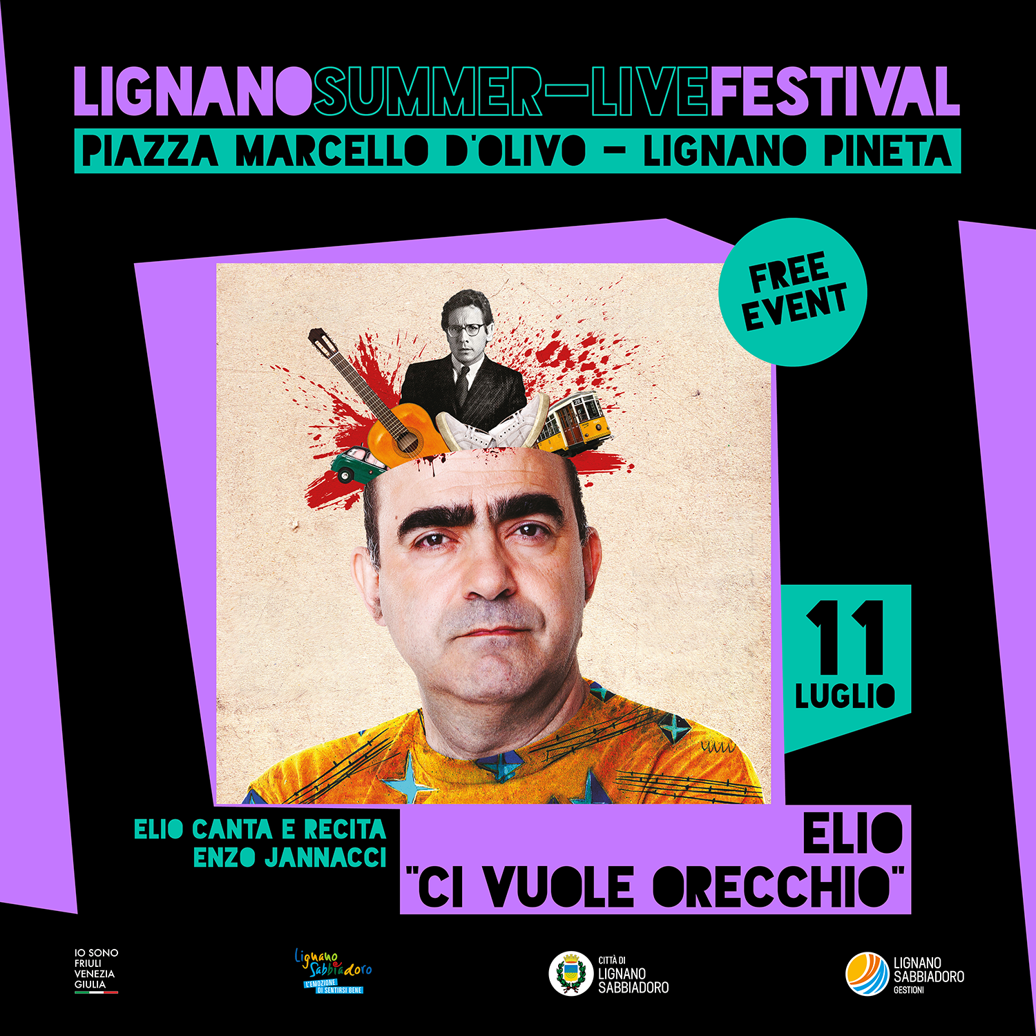 “Ci vuol orecchio” uno spettacolo in cui il cantautore, flautista e comico Stefano Belisari, in arte Elio, canta e recita Enzo Jannacci. Il poetastro come amava definirsi, è stato il cantautore più eccentrico e personale della storia della canzone italiana, in grado di intrecciare temi e stili apparentemente inconciliabili: allegria e tristezza, tragedia e farsa, gioia e malinconia. E ogni volta il suo sguardo, poetico e bizzarro, è riuscito a spiazzare, a stupire: popolare e anticonformista contemporaneamente. Un Buster Keaton della canzone, nato dalle parti di Lambrate, che verrà rivisitato, reinterpretato e “ricantato” da Elio accompagnato da cinque musicisti, i suoi stravaganti compagni di viaggio, che formeranno un’insolita e bizzarra carovana sonora: Alberto Tafuri al pianoforte, Martino Malacrida alla batteria, Pietro Martinelli al basso e contrabbasso, Sophia Tomelleri al sassofono, Giulio Tullio al trombone. Uno spettacolo giocoso e profondo inserito in una colorata scenografia disegnata da Giorgio Gallione, perché “chi non ride non è una persona seria”.