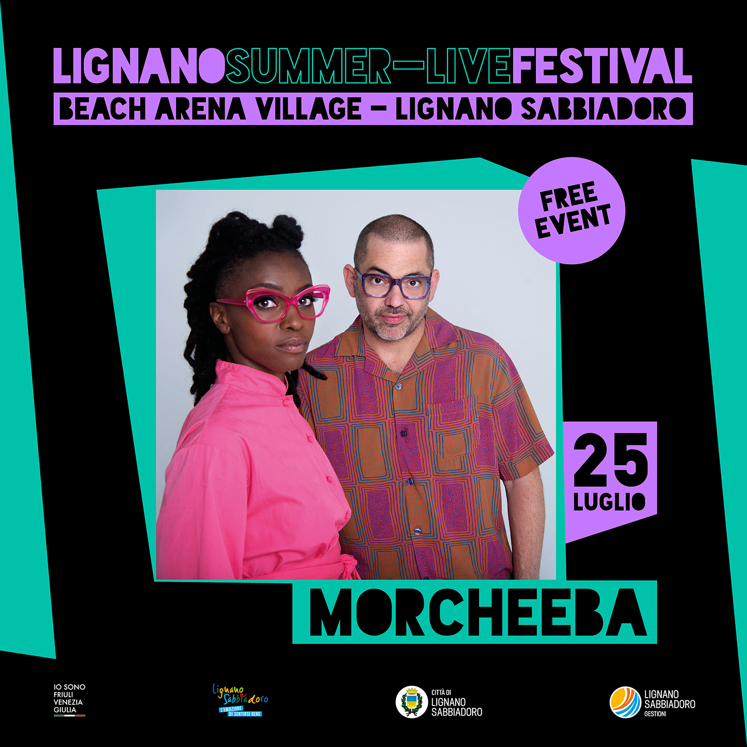 I Morcheeba, un gruppo musicale britannico originario di Londra il cui esordio risale al 1995, con quella che è considerata la storica formazione del gruppo: Skye Edwards (voce), Paul Godfrey (disc jockey) e Ross Godfrey (chitarrista e tastierista). Affermatisi sulla scena Trip hop inglese al termine degli anni novanta, la loro fama si è protratta ed accresciuta nel tempo. Nel corso della loro carriera ventennale, hanno abbracciato con l'utilizzo dell'elettronica più di un genere musicale, attingendo al pop rock, all'alternative rock e all'indie rock. Ma è nel 2000 che il loro successo si espande a livello mondiale con il loro brano Rome Wasn't Built in a Day, che diventa presto una hit in diversi Paesi. Questa estate i Morcheeba verranno a Lignano per presentare il loro ultimo album “Blackest Blue” pubblicato nel 2021 e risultato di profondi viaggi interiori degli artisti durante i periodi di lockdown legati alla pandemia.