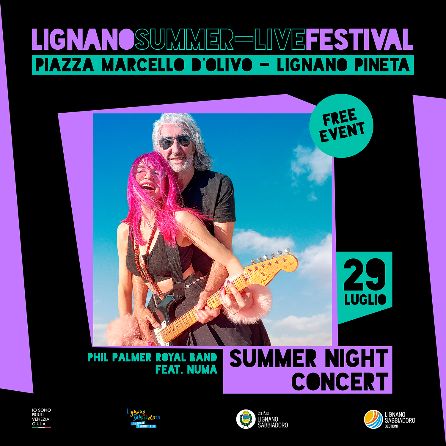 Presso il Beach Arena Village a Sabbiadoro (c/o ufficio spiaggia 7) e Piazza Marcello d’Olivo a Pineta si svolgerà "Lignano Summer Live Festival" la rassegna di concerti e spettacoli gratuiti organizzata da Lignano Sabbiadoro Gestioni spa e dal Comune di Lignano Sabbiadoro.