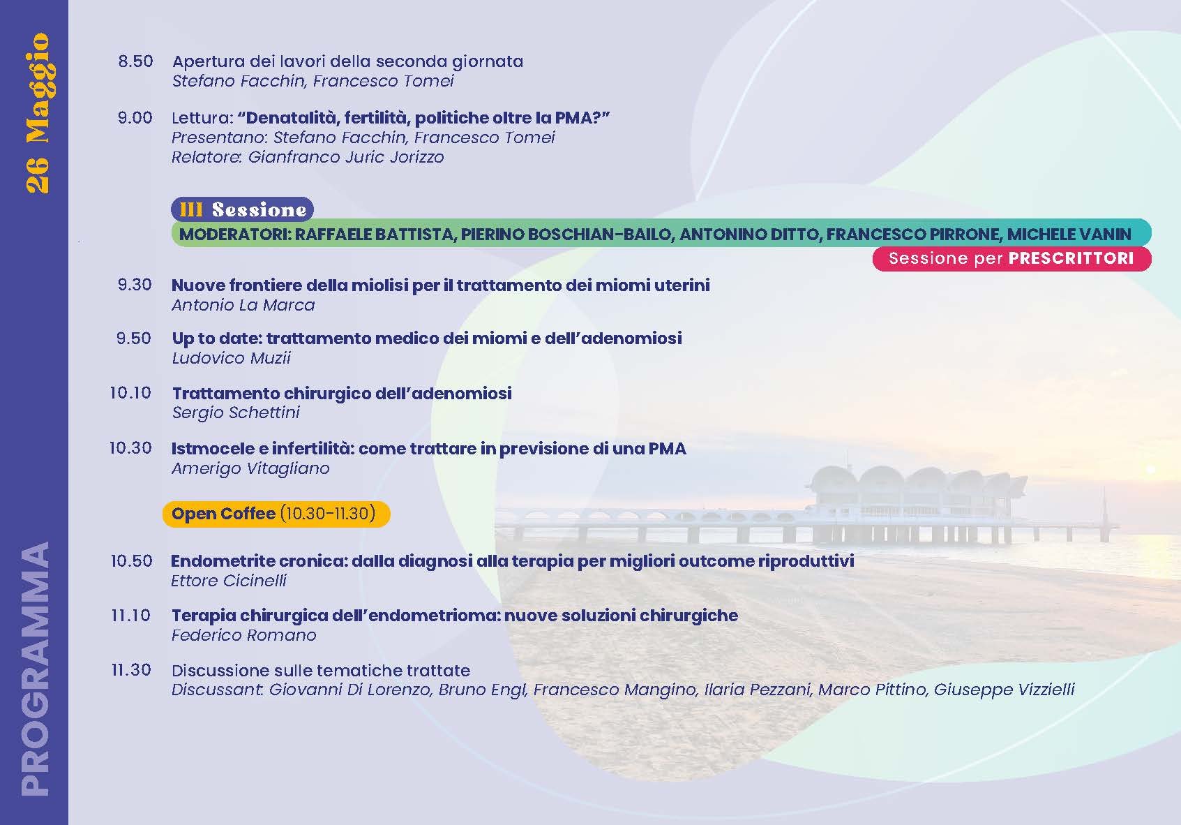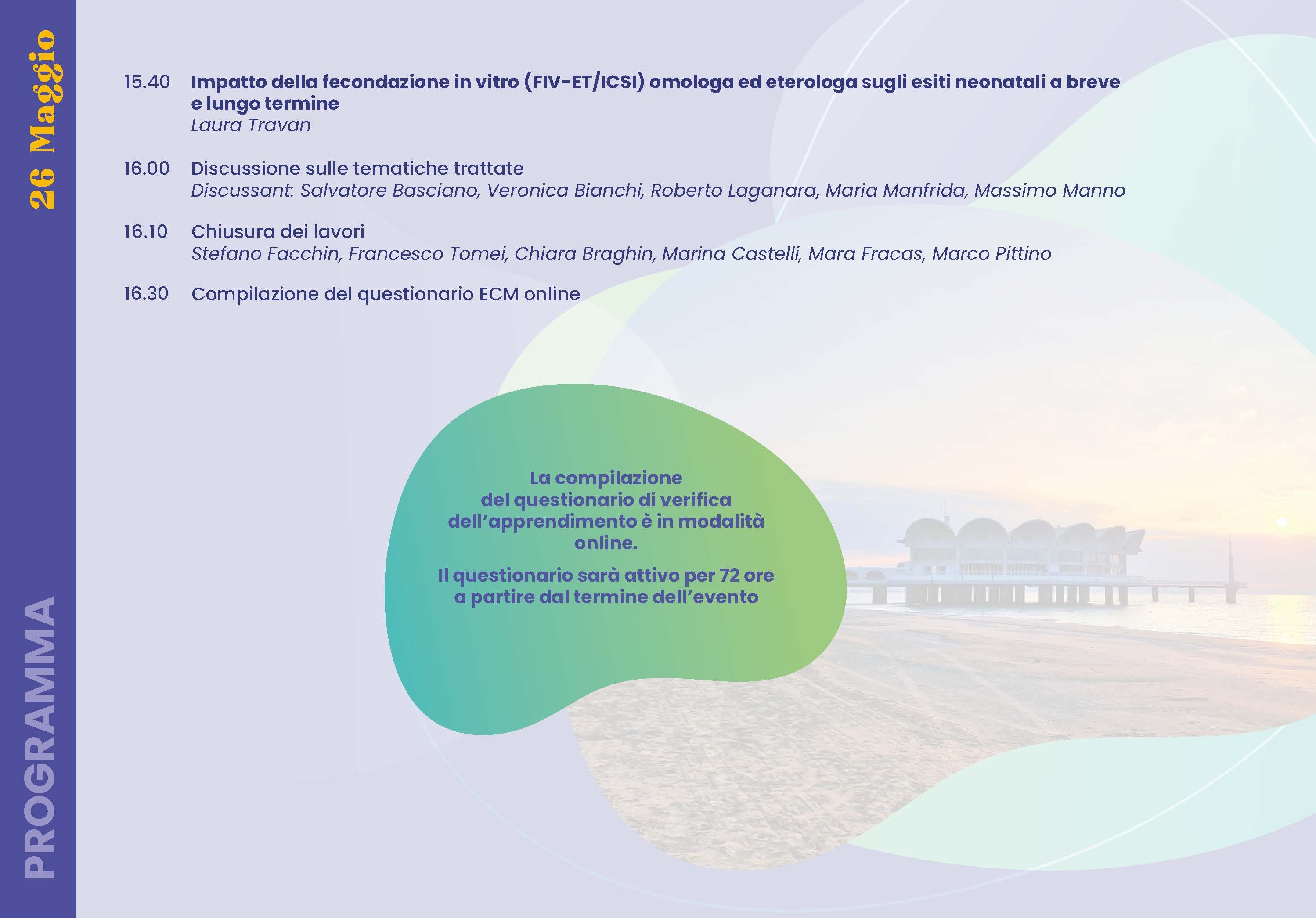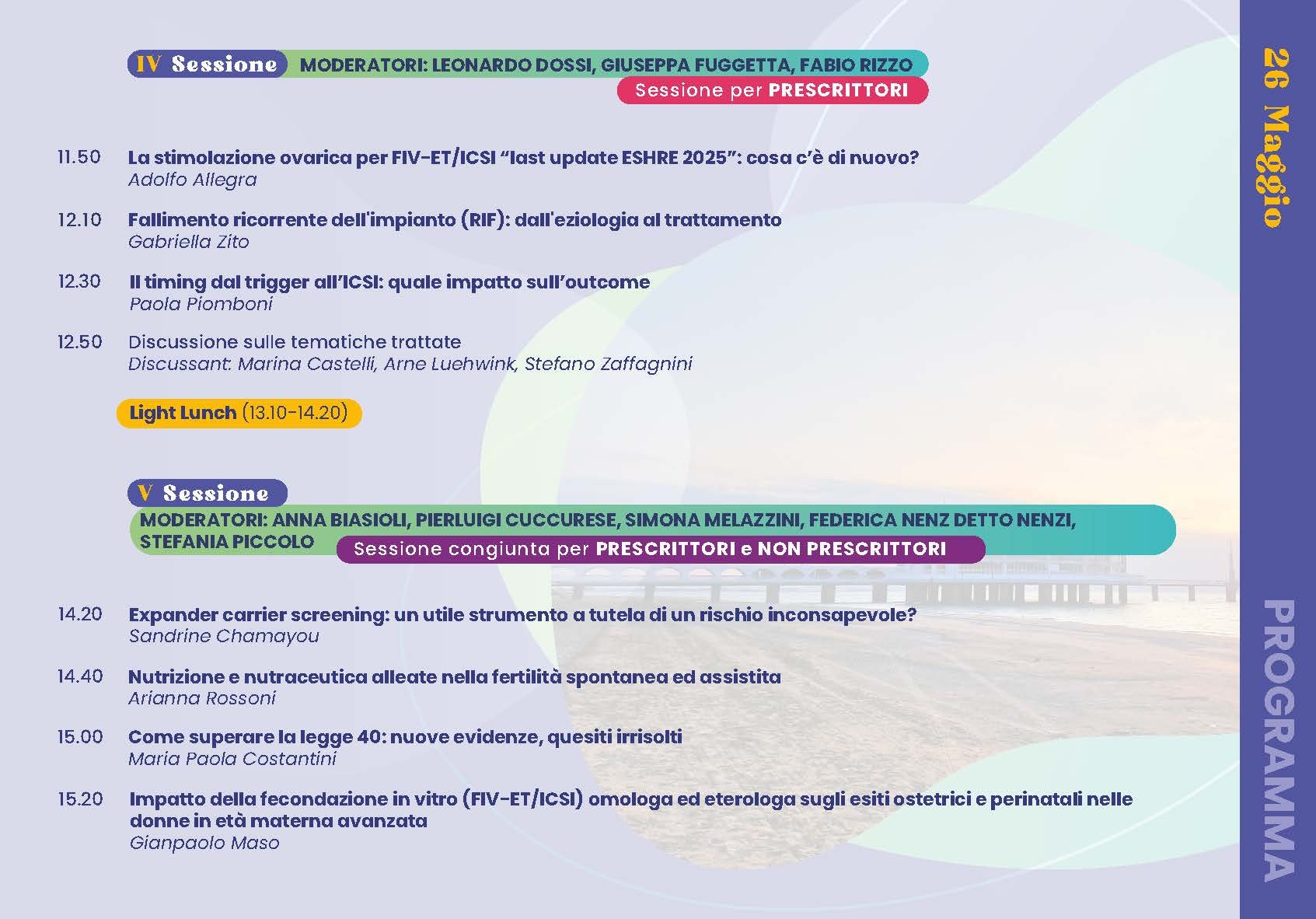 Il 25 e 26 maggio 2026 si tiene il congresso "VII Giornate Lignanesi di Medicina e Chirurgia della Riproduzione Umana" rivolto a 200 professionisti tra medici chirurghi, psicologi, assistenti sanitari, infermieri, ostetriche, biologi, tecnici sanitari di laboratorio biomedico.