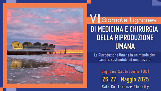 Il 26 e 27 maggio 2025 si tiene il congresso "VI Giornate Lignanesi di Medicina e Chirurgia della Riproduzione Umana" rivolto a n. 150 tra Medici Chirurghi (area interdisciplinare), Psicologi (psicologia e psicoterapia), Assistenti sanitari, Infermieri, Ostetriche, Biologi, Tecnici sanitari di laboratorio biomedico.