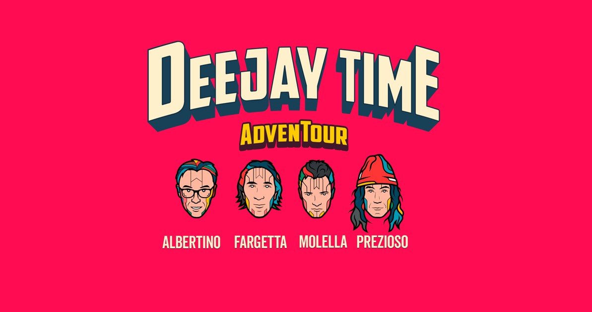 Finalmente possiamo dirlo: It’s Deejay Time! Il programma che ha fatto la storia della radio italiana esce dal Palazzo delle Radio di via Massena per farvi emozionare con un nuovissimo show dal vivo, l’AdvenTour 2022. Albertino, Fargetta, Molella e Prezioso, dj che hanno fatto la storia della musica dance e della radio italiane sono pronti per far ballare, tutti insieme, gli amici della cassettina e non solo sulle note delle hit più famose degli anni ’90 e della musica dance.