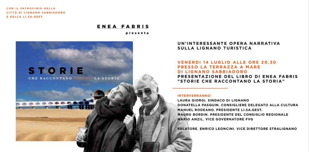 Venerdì 14 luglio alle ore 20.30 nella splendida location di Terrazza Mare, l'autore Enea Fabris presenterà il suo nuovo libro Storie che raccontano la storia, opera narrativa sulla Lignano turistica.