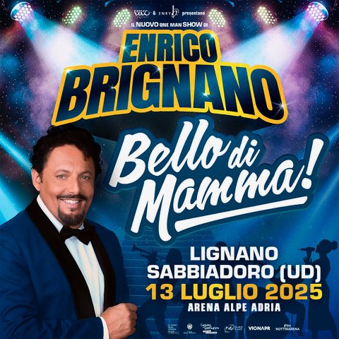 Enrico Brignano annuncia il suo nuovo one man show “Bello di mamma!”, che in estate lo vedrà impegnato nelle principali arene della penisola italiana: l’unica tappa in Friuli Venezia Giulia è prevista domenica 13 luglio all’Arena Alpe Adria di Lignano Sabbiadoro.