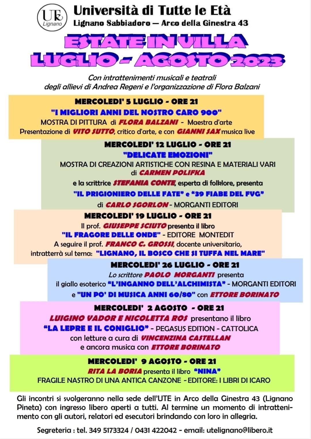 The meetings will take place in Arco della Ginestra, 43 (Lignano Pineta) with free entrance and open to all.