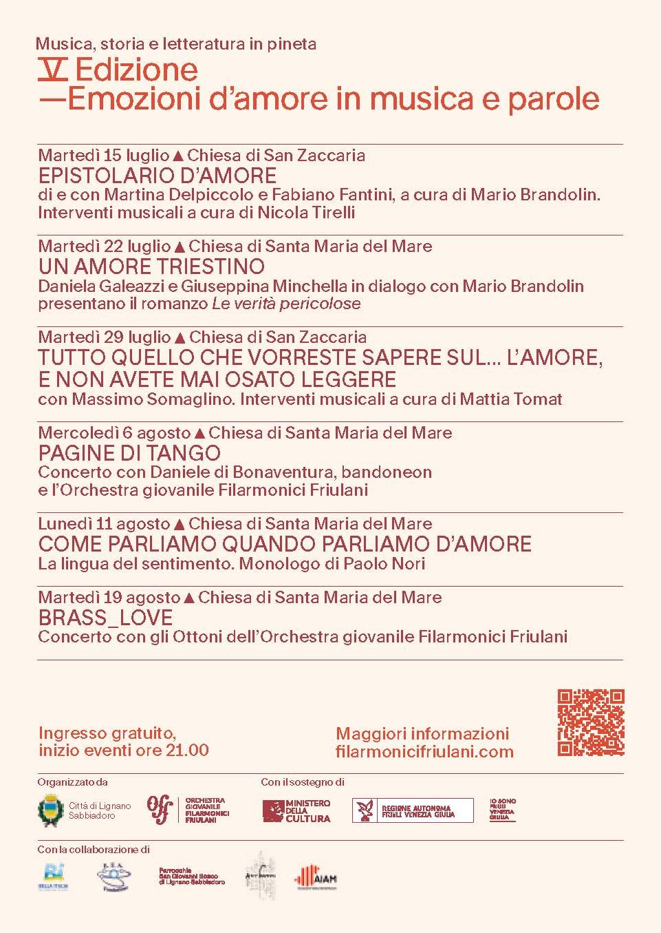 Accanto ad attori, scrittori e artisti di rilievo protagonista della rassegna è l’Orchestra giovanile Filarmonici Friulani, tra reading musicali e concerti d’ensemble.