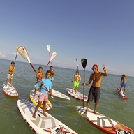 Yoga- und Fitness-Unterricht auf Stand Up Paddle.