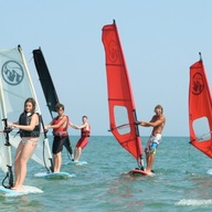 Beim Wind Village, innerhalb des Strandbades Nummer 7 in Lignano Sabbiadoro gelegen, findet die Saisonschule für Windsurfing und Stand Up Paddling statt.