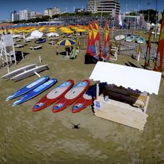Beim Wind Village, innerhalb des Strandbades Nummer 7 in Lignano Sabbiadoro gelegen, findet die Saisonschule für Windsurfing und Stand Up Paddling statt.